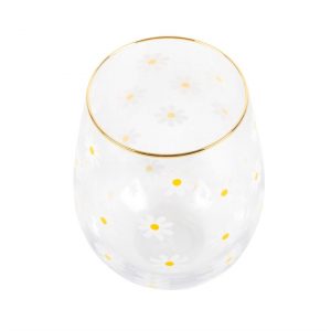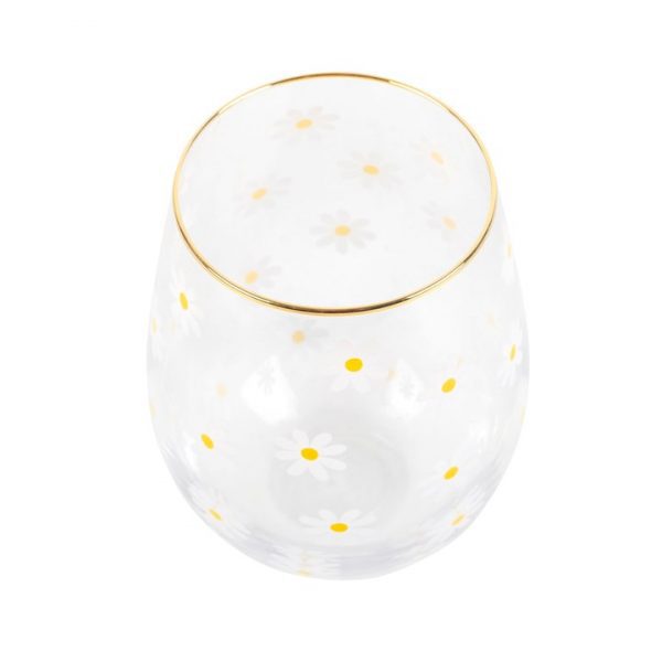 Cheerful and understated, this charming stemless glass features an all-over daisy print and a gold-tone rim. Great for springtime and happy gatherings in the sunshine, this glass makes a great gift for all occasions. 500ml capacity. Hand wash only. Do not microwave.