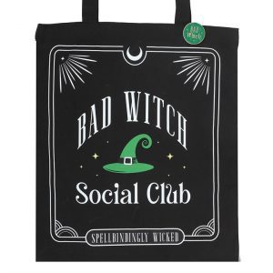 Embrace your rebellious streak with this black polycotton tote bag featuring bold ‘Bad Witch Social Club’ text and an enamel pin badge to match. Whether you’re shopping, spell-casting, or strutting your stuff, this bag brings serious attitude. 98% polyester, 2% cotton.