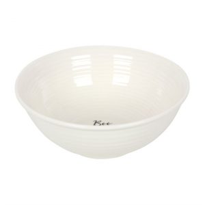 This white ceramic bowl has a country appeal with its ridged texture and ‘Bee Happy’ design. A great bowl for breakfast and starting the day with a positive affirmation. Dishwasher and microwave safe. Product Dimensions: H7cm x W17cm x D7cm Packaged Dimensions: H7.5cm x W17.5cm x D18cm