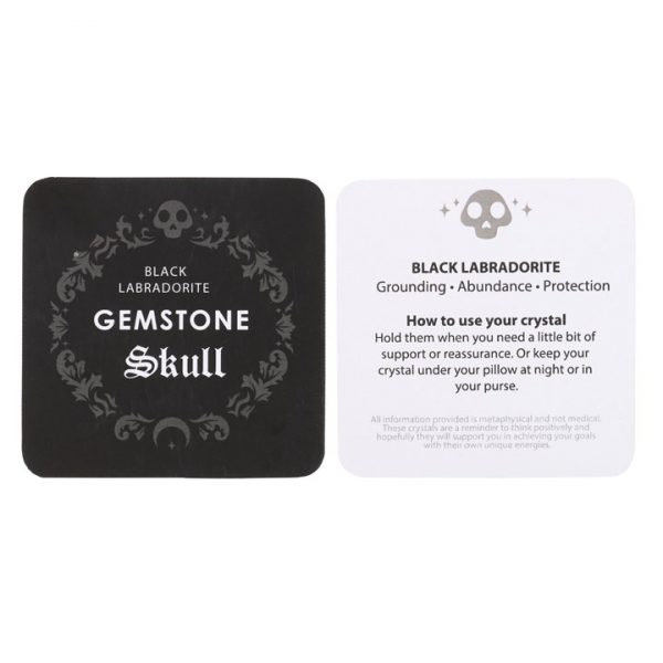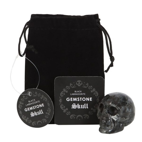 This crystal skull is made from black labradorite which is a stone renowned for its ability for grounding, bringing abundance and offering protection.