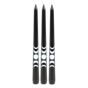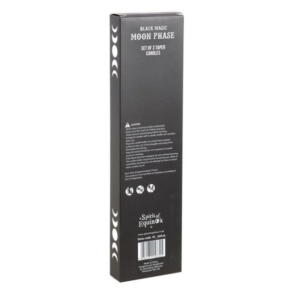 This pack of 3 black taper candles are perfect for adding final finishing touches to a table setting or adding decorative accents around the home. Adorned with a mystical moon phase design, the candles offer the perfect blend of elegance and celestial symbolism and are a must-have for anyone seeking to add a unique touch to their living space.