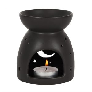 This black ceramic oil burner features a cut-out crescent moon and star design with a cool, matt finish. Compatible with both fragrance oil and wax and perfect for Halloween or spooky decor! Product Dimensions: H10.5cm x W9.5cm x D9.5cm Packaged Dimensions: H12.5cm x W11cm x D11cm