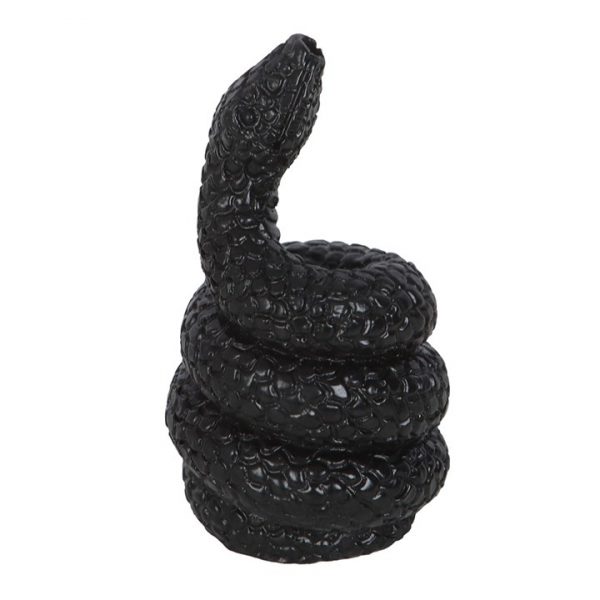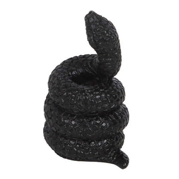 This coiled snake will carefully hold your favourite incense stick. Crafted in resin with a delicate scale texture, this piece makes a dark and elegant decoration when not in use.