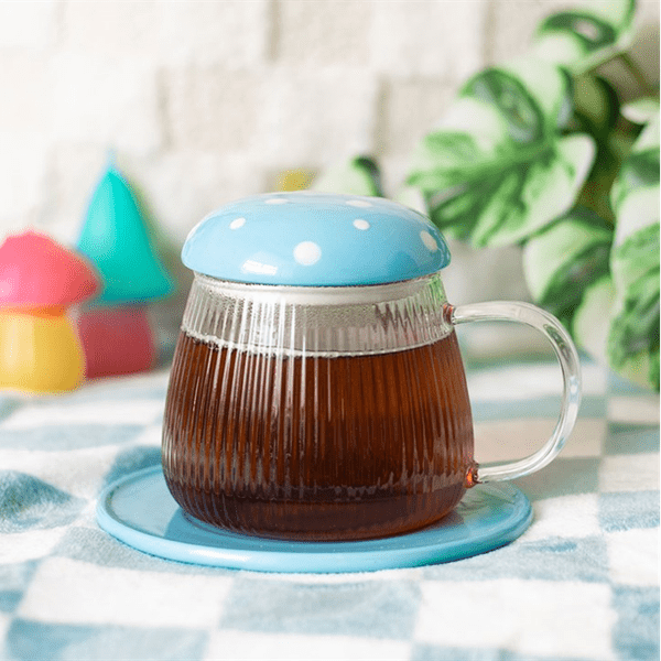 Make each day brighter with this fun and whimsical mushroom mug. Paired with a matching coaster and made from glass, this design is given a groovy twist with a sky blue colourway, making it the perfect vessel for hot and cold drinks. 460ml. Do not microwave. Hand wash only.