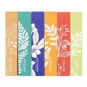 This set of incense holds 6 varieties of hand-rolled masala incense stick scents made from ethically produced oils, dyes and organic ingredients for a clean and fragrant burn. Fragrances include Cleansing White Sage, Protective Arruda, Earthy Frankincense, Spicy Cinnamon, Exotic Nag Champa and Holy Palo Santo. Set includes 84 incense sticks total, 14 in each fragrance pack. Vegan and cruelty-free.