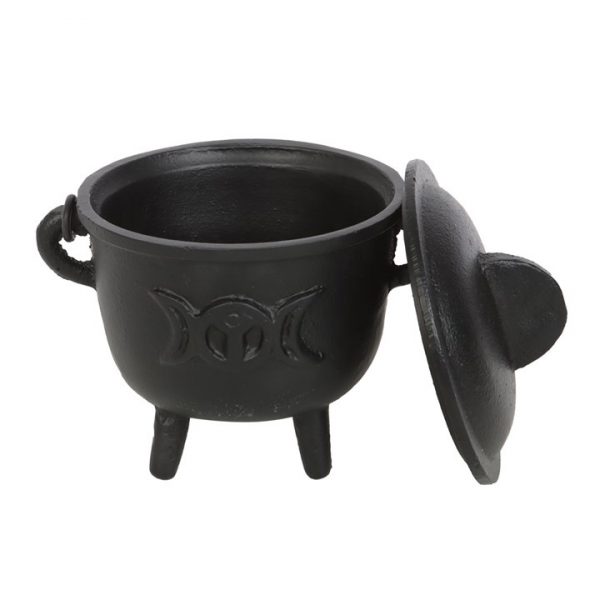 A small sized cast iron cauldron with triple moon design in a smooth finish. Add to an altar space for use during rituals and spell work. Also perfect for making moon water, scrying, combining herbs and more. Measures 11cm tall, not including handle. Not suitable for use with tall candles or food items. Caution: cauldron will get hot when used with a heat source. Please handle with care and always place on a heat resistant surface.
