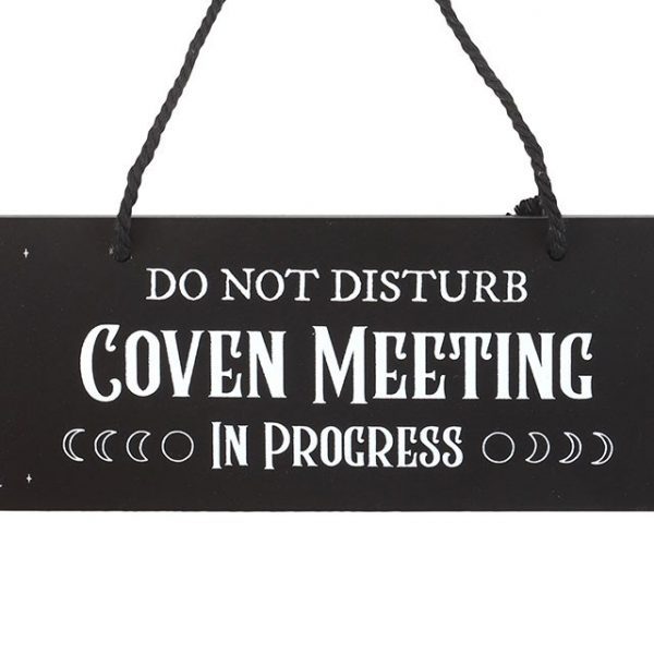 Set the mood for spell work or sacred gatherings with this ‘Do Not Disturb – Coven Meeting in Progress’ hanging sign, accented by mystical moon phases and star details. A must-have for any witchy space, it’s ideal for altars, reading nooks, or anywhere a little magical privacy is needed.