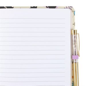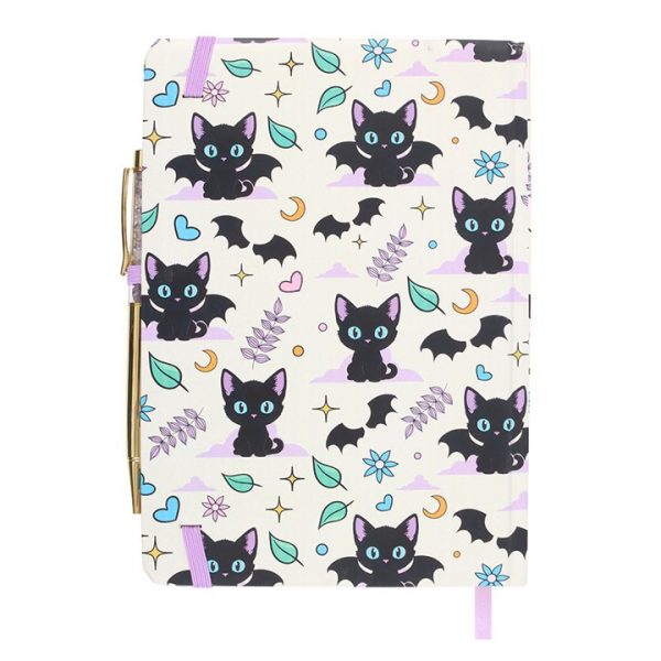 This A5 notebook is perfect for scribbling notes and ideas, featuring a playful black cat print and a matching amethyst chip pen. An ideal gift for feline-loving writers and witches alike. 100 sheets / 200 lined pages.