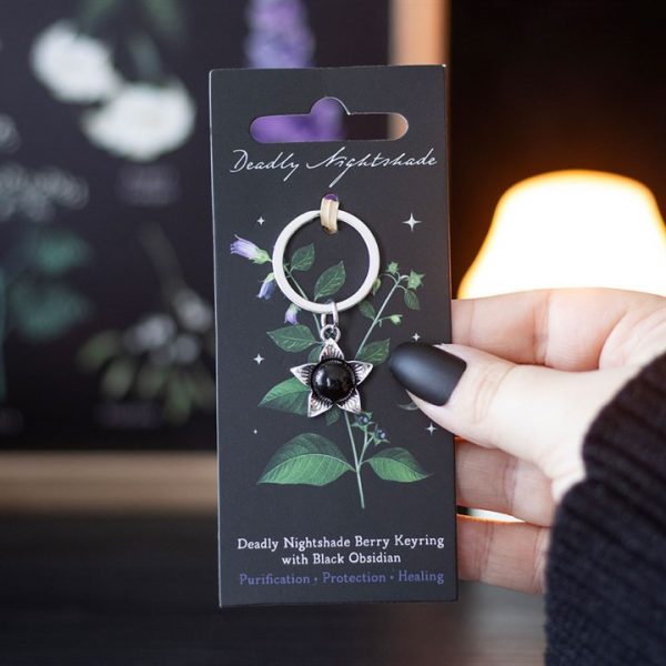 Add a touch of the mysterious to your keys with this metal keyring featuring a Deadly Nightshade berry design and a black obsidian accent. Functional and striking, it’s a practical accessory with a gothic flair. Designed by Something Different Wholesale and part of the Venom and Vines collection of gothic home decor and accessories.