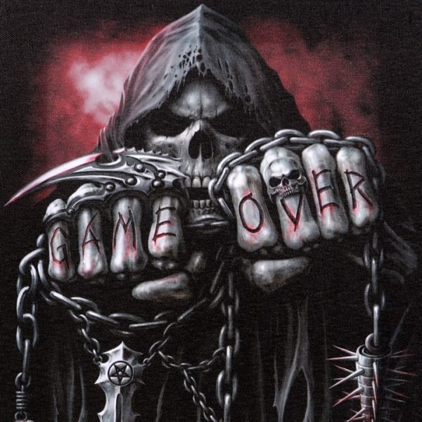 This dark and edgy canvas plaque features licensed artwork from Spiral Direct. ‘Game Over’ depicts the Grim Reaper with ‘game over’ carved into his ghostly knuckles and will elevate any gothic decor. 19x25cm.