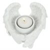 This pretty white double angel wing decoration features iridescent glitter for a sparkly effect when caught in the light. The wing comes on a metallic silver ribbon ready for hanging.