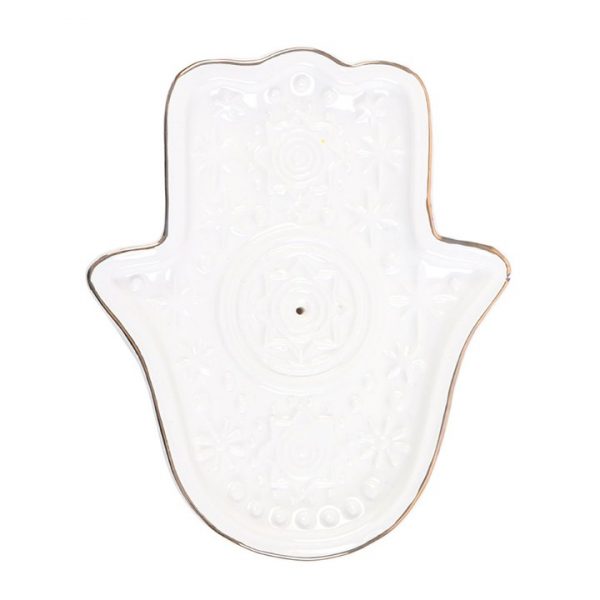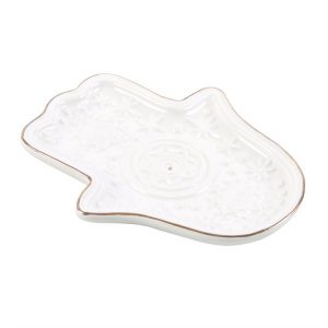 Hand of Hamsa White Incense Holder and Trinket Dish