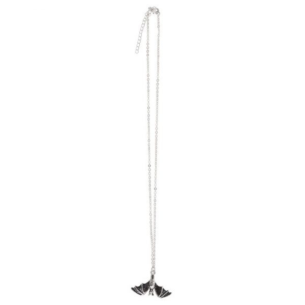 This fun necklace features a dangling stainless steel bat and is a unique piece to add to any jewellery collection. Perfect for adding an edgy flair to your look. The intricately designed bat dangles from a stainless steel chained necklace. Presented on a matching backing card.