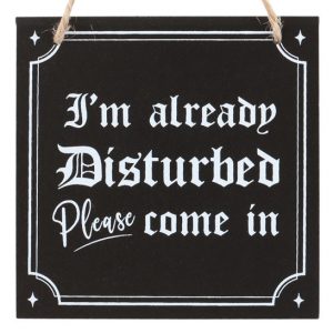 Show off your macabre sense of humour with this alternative take on a classic ‘Do Not Disturb’ sign. Features ‘I’m already disturbed, please come in’ text written in gothic lettering. Finished with a jute rope for easily hanging in the entrance of your dark lair.