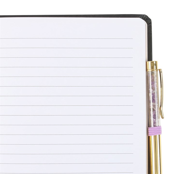Jot down spells, thoughts, or to-do lists with this A5 notebook featuring the phrase ‘In My Witch Era’ and a bat-winged black cat design. Comes with an amethyst chip pen for an extra mystical touch. 100 sheets / 200 lined pages.