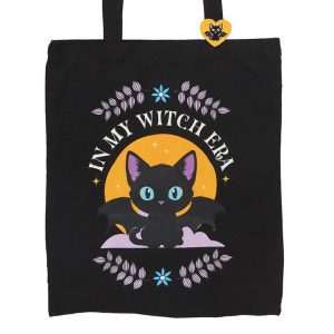 Step out in spooky style with this polycotton tote bag featuring the phrase ‘In My Witch Era’ alongside an enchanting bat-winged black cat. Complete with a matching enamel pin, it’s the perfect everyday accessory for those who love all things mystical. 95% polyester, 5% cotton.