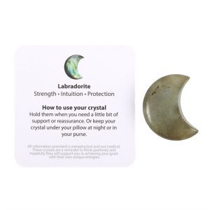 Capture the energy of the moon with this small crescent-shaped labradorite crystal. Accompanied by a matching sentiment card with inspiring, “Love you to the moon & back” text and a drawstring bag, it’s the perfect token to remind someone of their inner strength and importance.