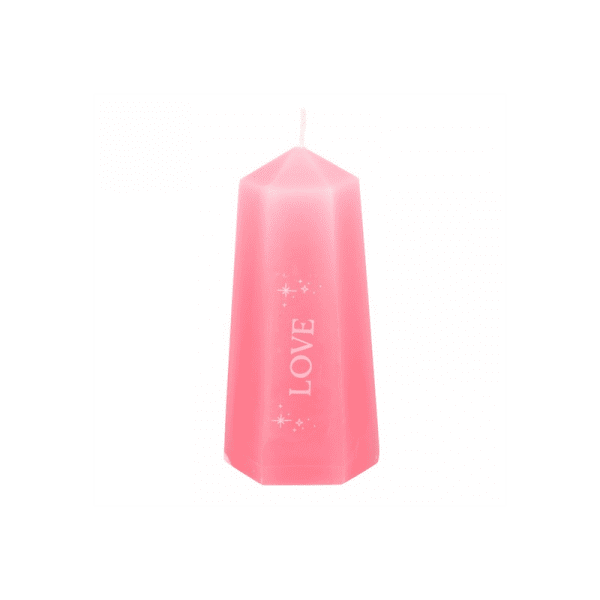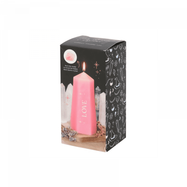 Attract romance and promote inner confidence with this Love Crystal Candle. Shaped like a pink crystal tower, this candle offers up to 30 hours of burn time to gradually reveal a rough rose quartz crystal hidden at the bottom. Perfect for setting intentions and manifesting your dreams, it’s the ideal accessory to complement your sacred space. Unscented paraffin wax. Burn on a protected surface.