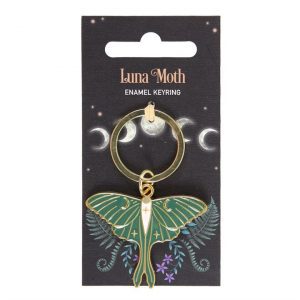 This ethereal keyring features an enamelled, gold-tone luna moth charm on a matching backing card.
