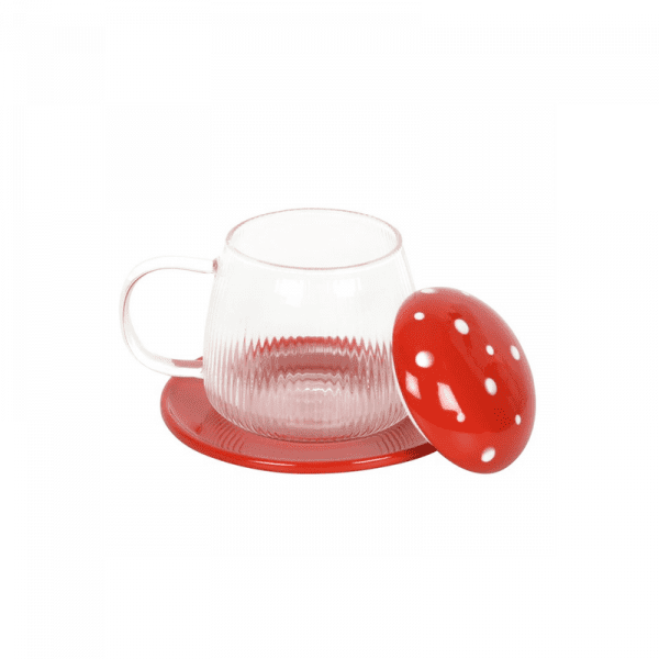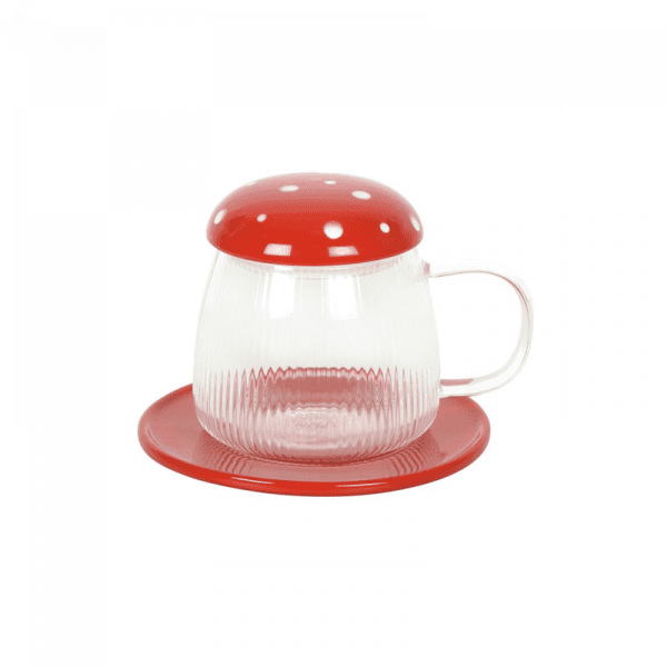 Make everyday a bit more magical with this enchanting toadstool shaped mug which comes complete with matching lid and coaster. Made from glass, this fairytale favourite has been given a contemporary twist making it perfect for serving up sophisticated tea and coffee selections. The handy lid can be used to help keep drinks hot and also to keep dust out of the cup when it’s not in use and sitting pretty on the kitchen shelves. Handwash only. Do not microwave. 450ml.