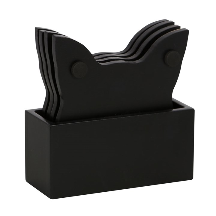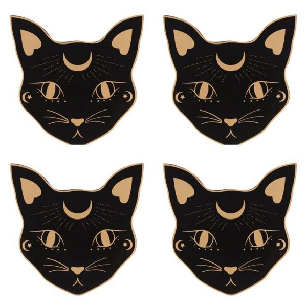 This set of 4 coasters comes in the shape of a mystical cat face and includes a matching holder with crescent moon accents. Product Dimensions: H12cm x W12.5cm x D4cm Packaged Dimensions: H12.7cm x W13.5cm x D5cm