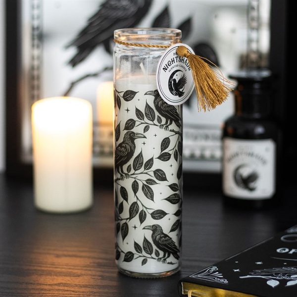 Illuminate your surroundings with this glass tube candle featuring a deadly nightshade-inspired design, perfect for setting a mysterious mood. A wonderful gift for gothic candle lovers or an elegant addition to your home décor. Approximate 70 hour burn time.