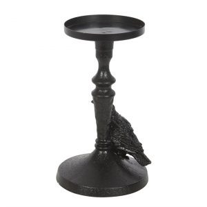 This resin candle holder features a raven perched dramatically on a gothic-inspired base, perfect for holding your favourite pillar candles. A striking centrepiece for gothic dining tables or mantelpieces.