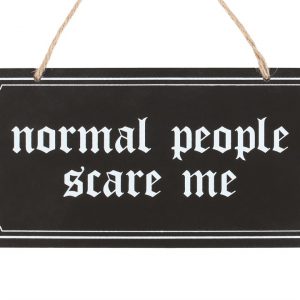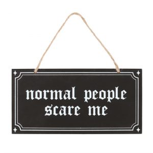 Embrace your quirky character and let your unique traits be known with this gothic style hanging sign which reads ‘Normal People Scare Me’.
