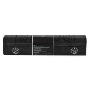 This incense gift set includes 10 black pepper fragranced incense sticks in a mango wood box. Printed with white pentagrams, this box doubles as both an incense holder and storage. Product Dimensions: H6.5cm x W31cm x D6cm Packaged Dimensions: H6.5cm x W31cm x D6cm
