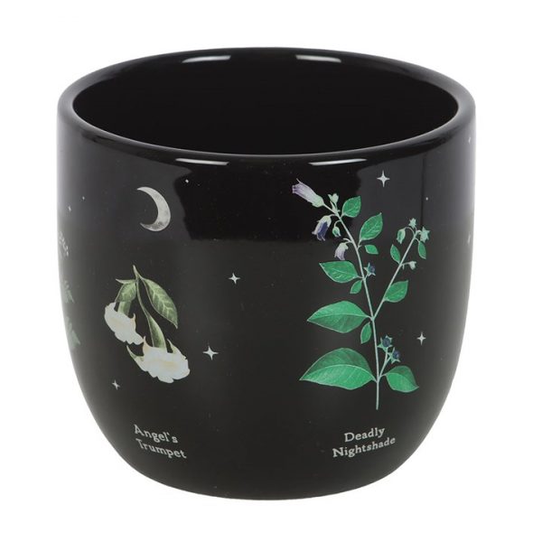 Add dark elegance to the home with this ceramic plant pot, featuring a striking design of poisonous plants. Adorned with poison ivy, hemlock, deadly nightshade, angel’s trumpet, poison oak, wolfsbane and foxglove, it makes a great gift for indoor garden enthusiasts and serves as an eye-catching decorative piece.