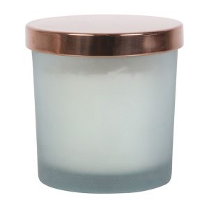 Manifest positive energy with this stunning white sage fragranced candle. A blue frosted glass holder and metallic lid are accented by a scattering of clear quartz crystal chips that can later be reused for a multitude of spiritual purposes. Paraffin wax. Crystals will release from wax with use. Approximate burn time of 25 hours. Please practice caution when burning and never leave lit candle unattended.