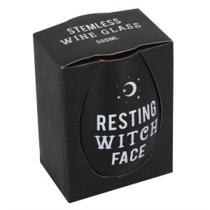 This frosted black stemless wineglass features the words ‘Resting Witch Face’ and is part of our exclusive Black Magic collection designed for sassy and strong women. The glass comes presented in a matching cardboard box. N