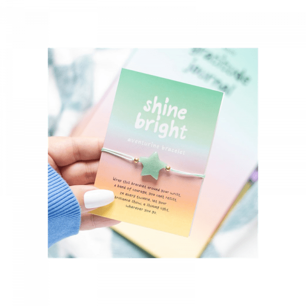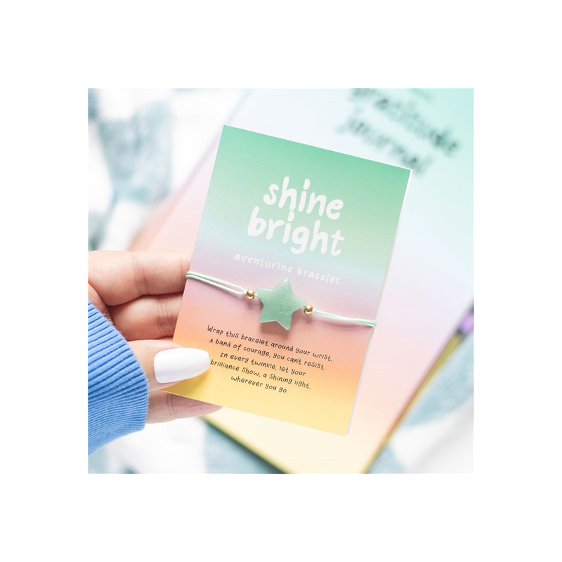 Radiate confidence with this charming green aventurine crystal star bracelet. Presented on a heartfelt backing card that reads ‘Shine bright’ and includes a short poem for an extra boost of positivity. An ideal gift to remind someone special of their courage and resilience.