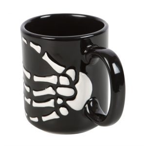 Feel dead without your morning cuppa? Make the transition from cosy crypt to cold commute a little bit warmer with this skeleton hand mug.