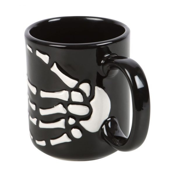 Feel dead without your morning cuppa? Make the transition from cosy crypt to cold commute a little bit warmer with this skeleton hand mug. 350ml capacity. Handwash only. Do not microwave.