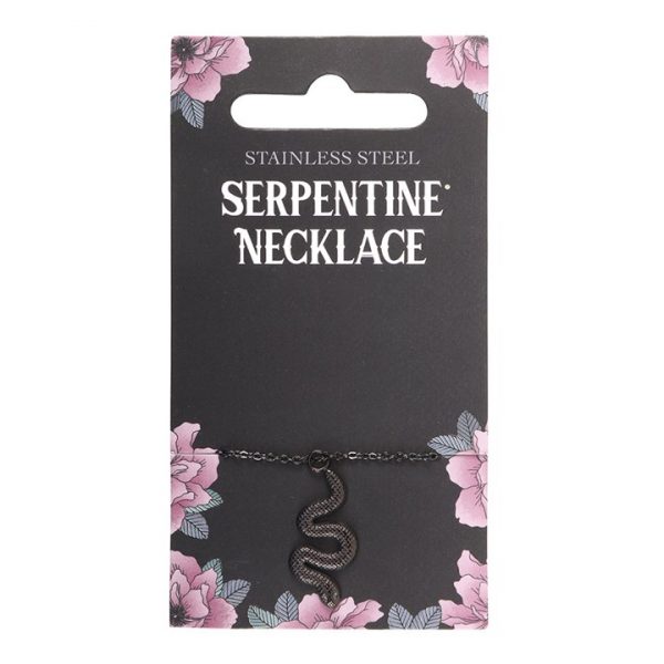 This dark and elegant necklace features a delicate snake pendant in a cool black finish. Presented on a floral backing card and perfect for gifting. Nickel-free stainless steel.