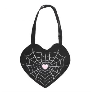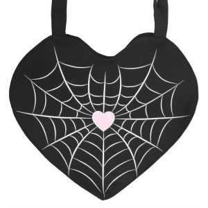 Carry your essentials with gothic flair using this satin tote bag featuring a spiderweb heart design. Lightweight and stylish, it’s perfect for everyday use or as a unique gift. 98% polyester, 2% cotton.