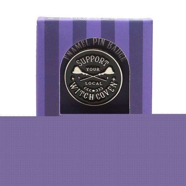 Show off your spooky side with this enamel pin badge featuring the phrase ‘Support Your Local Witch Coven’ alongside crossed broomsticks. A perfect accessory for jackets, bags or hats, and an ideal gift for proud witches and magickal mischief-makers.
