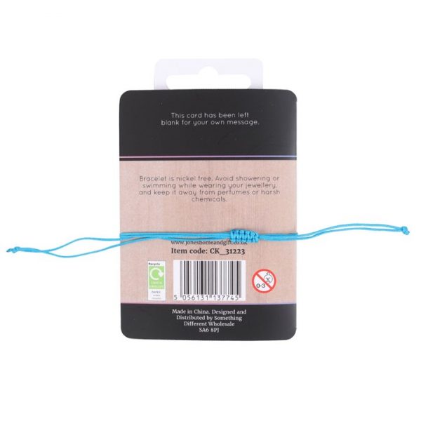 Balance and realign the throat chakra with this blue string and metal charm bracelet. Presented on a matching backing card that reads, ‘Communication, expression, clarity, truth, purpose’. Product Dimensions: H1.9cm x W2.4cm x D0.8cm Packaged Dimensions: H2.3cm x W13cm x D2cm