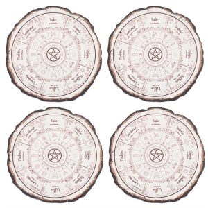 Protect surfaces with a touch of seasonal wisdom using this set of four coasters, each featuring a wood slice effect and a Wheel of the Year design. Perfect for spiritual homes and altars, these rustic-style coasters honour nature’s cycle while keeping your space tidy.