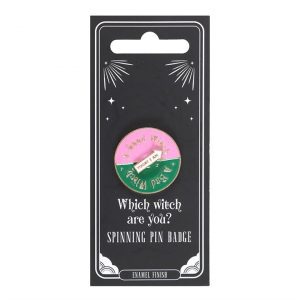 Let the pin decide your vibe with this playful enamel and alloy spinning badge that asks, ‘Which Witch Are You?’. With bold green, pink, and white detailing, it’s the perfect accessory for switching between Good Witch, Bad Witch, or something in between.