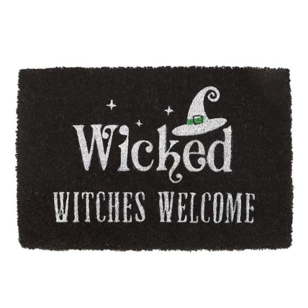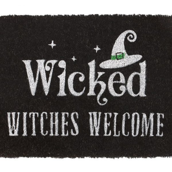 Let guests know who truly runs the house with this bold black doormat featuring the phrase “Wicked Witches Welcome” and a magical witch hat design. Ideal for spooky season or year-round sass, it’s a great gift for fans of witchy home style. Design may fade in extreme weather. Suggested for sheltered and indoor use only.